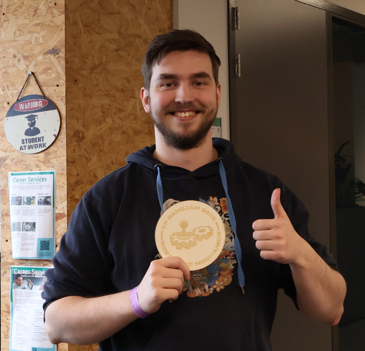 In my free time, I love working on my own projects and participating in GameJams, as well as playing games, volleybal and TTRPGs with friends.